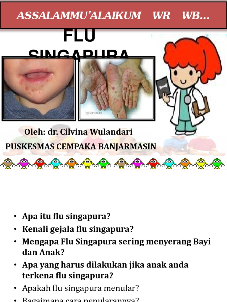 Positif Flu Singapura Kiano Alami Gejala Demam hingga Bintik-bintik Merah di Sekujur Tubuh. Gejala dan Ciri-ciri flu singapura antara lain. Di dalam dunia medis flu Singapura disebut dengan penyakit tangan kaki dan mulut hand foot and mouth diseaseFlu Singapura atau hand foot and mouth disease HFMD adalah penyakit yang mudah menular dan sering menyerang anak-anak usia 510.